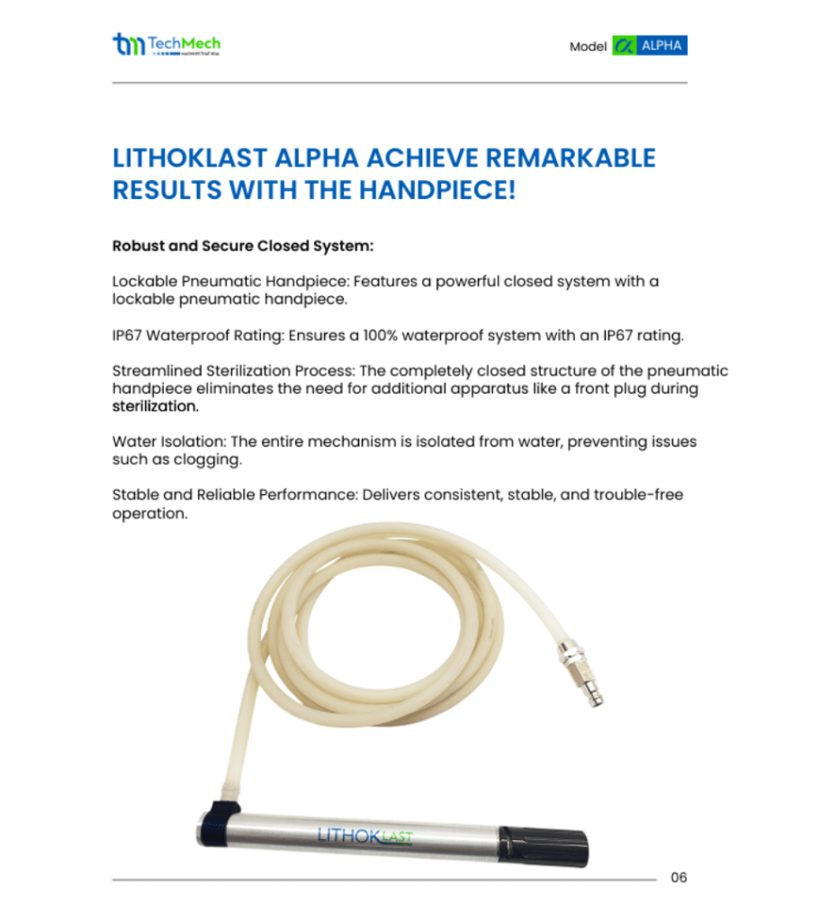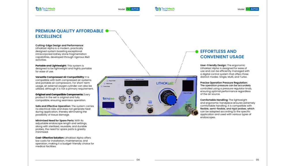 For the first time in Pakistan, a locally available pneumatic lithoklast offers a modern, precise, and safe solution for kidney stone fragmentation. Designed for performance and reliability, it brings advanced technology to operating rooms with simplicity, portability, and clinical efficiency at its core.
