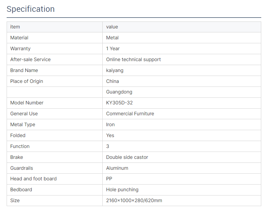 "3-function bed for hospital crafted from durable metal, featuring a hole-punched bed board for breathability and easy cleaning. Includes head and foot boards made of PP for comfort and functionality, ensuring optimal care and patient comfort."